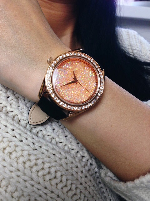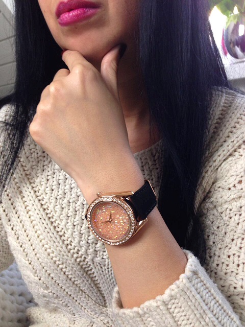 Ich trage gerne Uhren und bin richtig verliebt in diese Uhr. Wie fast alle Frauen mag ich es auch wenn es funkelt und glitzert. Ich könnte den ganzen Tag draufschauen … aber nicht weil ich nach der Uhrzeit sehe 🙂
